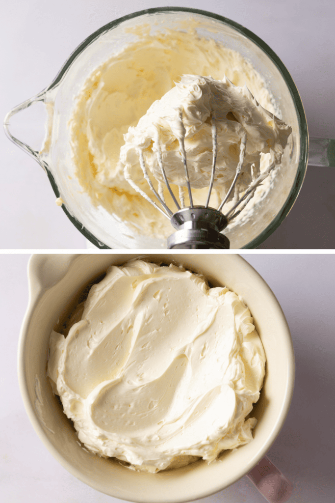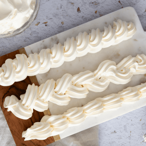 Rühre die Buttercreme 2-3 Minuten mit der gesamten Butter weiter, bis sie den gewünschten Helligkeitsgrad hat. Verwende die Swiss Meringue Buttercreme dann nach Herzenslust zum Dekorieren von Torten, Cupcakes und Co.