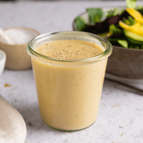 Das fertige Dressing hält im Kühlschrank ohne Weiteres 3-4 Tage. Wenn du das Tahini Dressing auf Vorrat zubereiten möchtest, dann empfehle ich, es in einem sauberen Marmeladenglas zuzubereiten und so im Kühlschrank zu lagern.