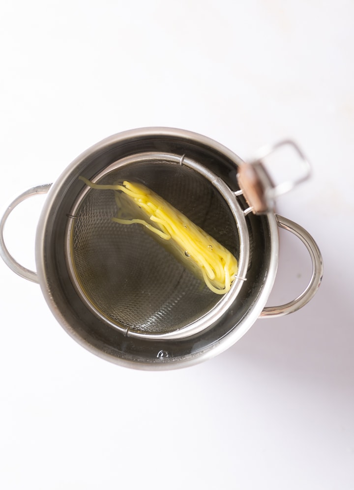 Bringe in einem separaten Topf Wasser für die Nudeln zum Kochen und gare sie nach Packungsangabe.