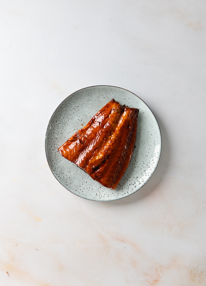 Teriyaki-Sauce abkühlen lassen, dann den Lachs damit übergießen. Im Kühlschrank für mindestens 30 Minuten, gerne über Nacht marinieren lassen.