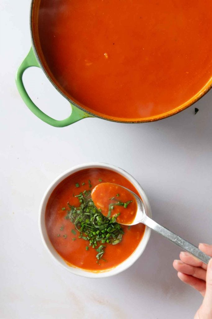 Einfaches Rezept für aromatische Tomatensuppe mit Reis. Die Zubereitung dauert nur ein paar Minuten. Egal ob leichtes Essen im Sommer oder Soulfood im Herbst und Winter, diese Tomatensuppe mit Reis geht einfach immer!