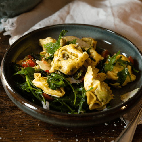 Einfaches Rezept für Tortellini Salat mit Pesto. Du brauchst nur ein paar Minuten und eine handvoll Zutaten für diesen aromatischen, leckeren sommerlichen Tortellinisalat mit Pesto und Tomaten.