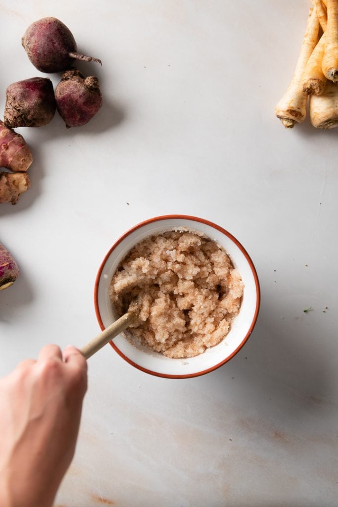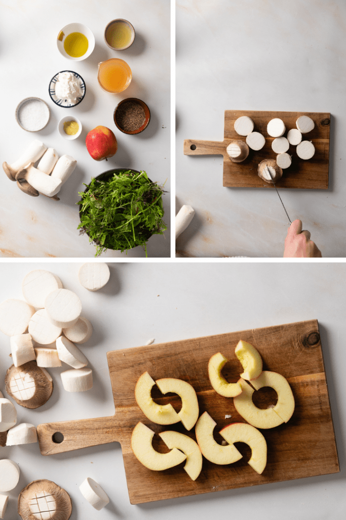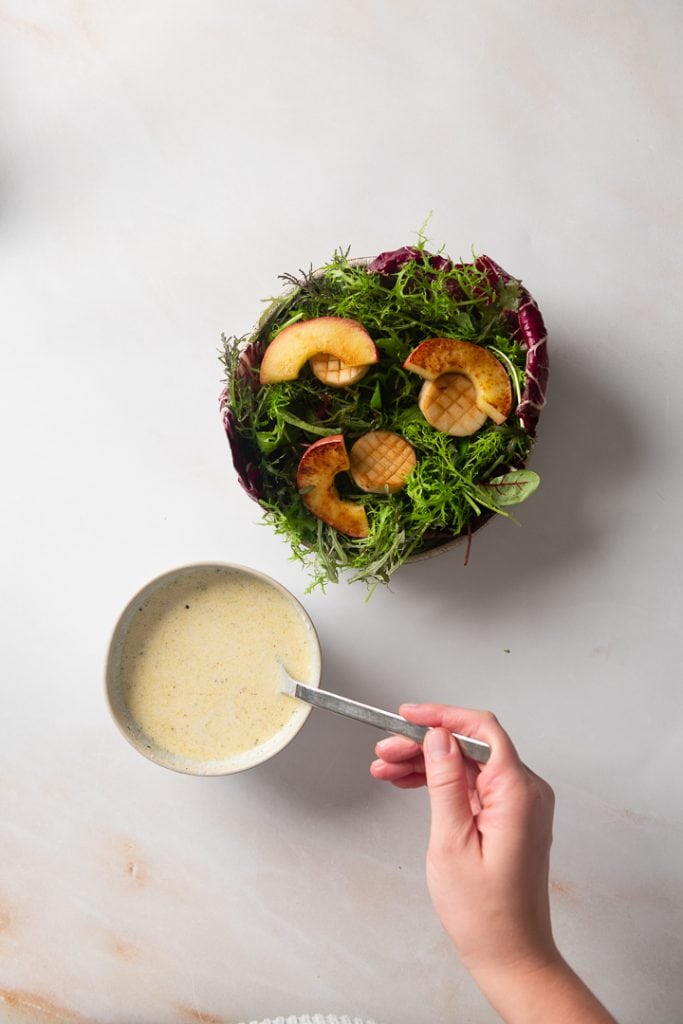 Wintersalat mit Kräuterseitlingen, Apfel und Joghurt Vinaigrette
