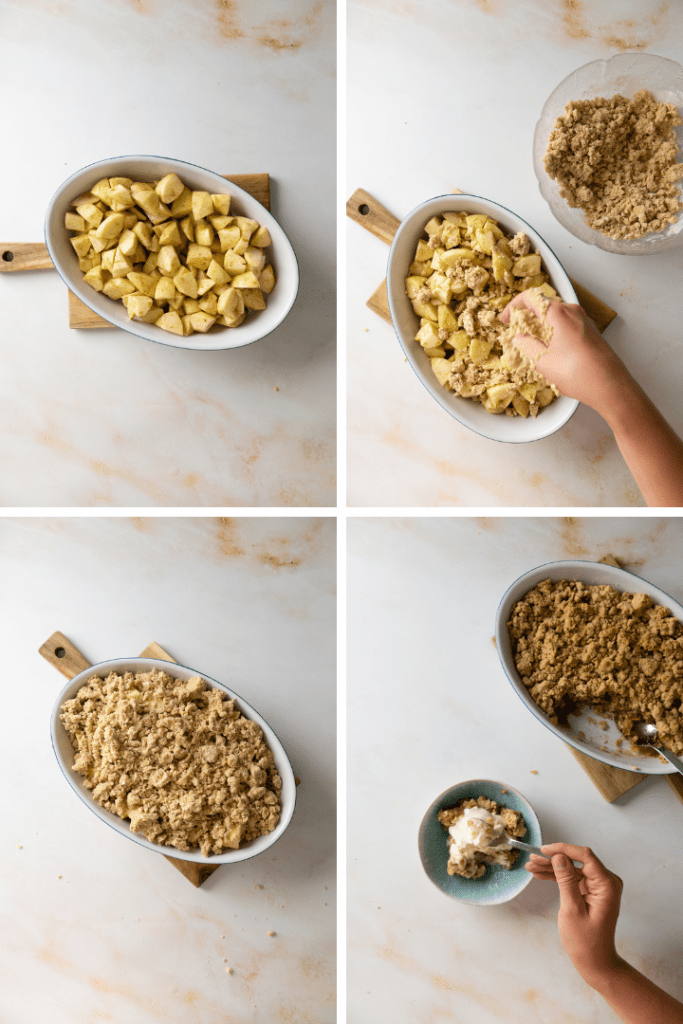 Einfaches Rezept für veganen Apple Crumble mit Haferflocken. Zimt sorgt für ein herrliches Aroma. Die zarten Äpfel, kombiniert mit knusprigen Streuseln, sind das leckerste Dessert für Herbst und Winter.