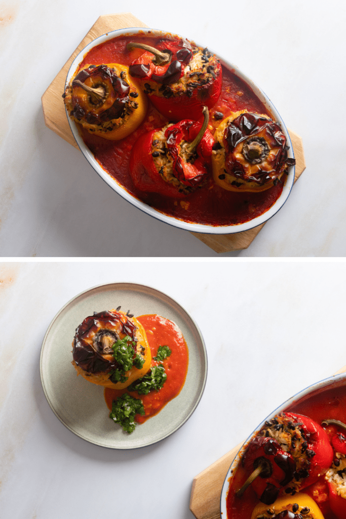Vegetarisch gefüllte Paprika servieren