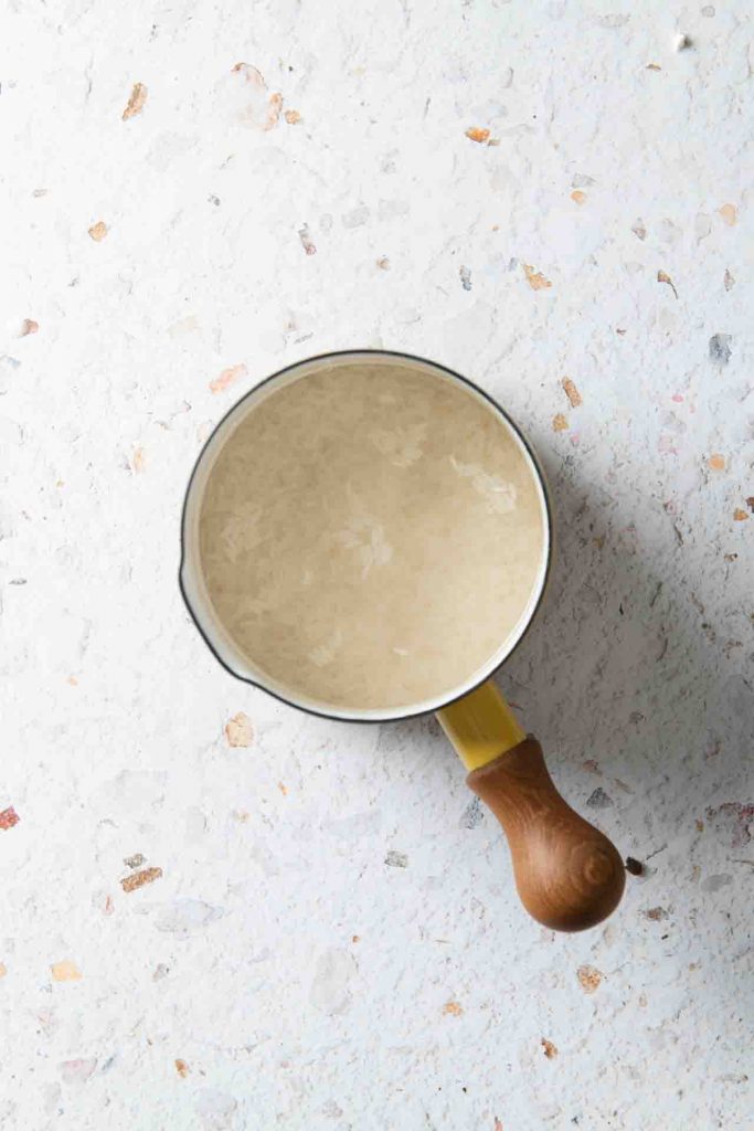 Gib den Reis zusammen mit dem Wasser in einen kleinen Topf und koche den Reis dann nach Packungsangabe.
