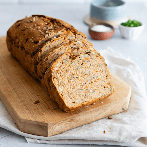 Teig in die vorbereitete Form füllen. Nach Belieben einige Extrakerne oben auf dem Brot verteilen. Für ca. 60 Minuten bei 200 °C Ober- und Unterhitze backen bis das Brot goldbraun ist. Das Brot dann aus der Form lösen. Die Oberseite mit Wasser bepinseln. Das Brot nochmal für 10 Minuten bei ca. 120 °C ausbacken. Dadurch trocknet die Kruste und wird gleichmäßig knusprig.