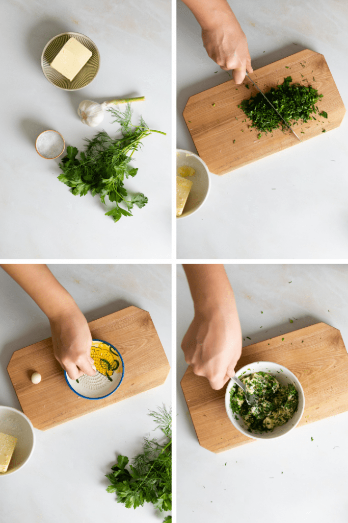 Butter zimmerwarm werden lassen. Knoblauch sehr fein hacken oder pressen, Petersilie fein hacken. Butter mit Knoblauch, Petersilie und Salz vermengen. Am besten geht das mit einer Gabel.