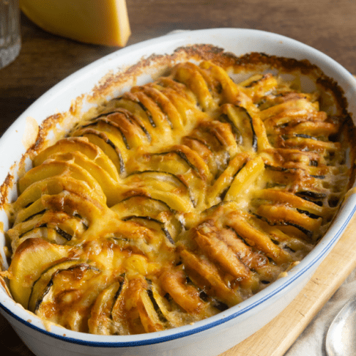 Schnelles Rezept für Zucchini Kartoffel Auflauf, der süchtig macht. Du brauchst nur ein paar wenige Zutaten und etwa 10 Minuten Zeit, um den unwiderstehlich leckeren Auflauf zuzubereiten.